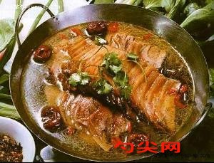工藝:狗去毛刮洗干凈(水的溫度在60--70之間),破腹去內(nèi)臟、大骨,用沸水連氽幾次,除去血跡至無臭味為止。用富磷聯(lián)B(提前溶解)腌制1-2小時。然后砍成兩節(jié)放入砂罐加水和姜數(shù)塊,置旺火上燉至湯沸,滴入少許苦膽汁,除去泡沫、浮渣,再用小火燉至軟時取出濾干水分,抹上熟菜油,使狗肉表面發(fā)光發(fā)亮,根據(jù)食用量切成3厘米見方的薄片。烹調(diào)方法:煮。將鍋洗凈置火上。原汁狗肉湯燒開,放入切好的肉片,加入少許姜片、蒜片、魚香菜、芫荽、蔥節(jié)、胡椒粉、花椒粉、砂仁、味精使其入味。吃時取小碗(每人1個)放放適量煳辣椒面,用狗油燒燙澆在辣椒上,加入鹽、姜米、蒜泥、魚香菜、香葉、芫荽、蔥花、胡椒粉、花椒粉、原湯、味達蕾901號等調(diào)味品。