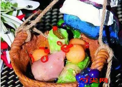 工藝流程:將豬手尖清洗干凈,哈密瓜挖成球形,大頭菜刨成細(xì)絲備用。將豬手尖放入沸水中焯水去腥,然后撈出放入白水中煮熟,直至肉質(zhì)軟爛但不過于松散。