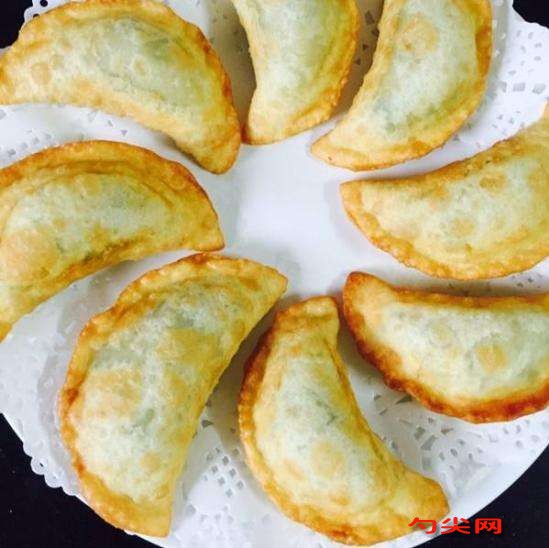 工藝:1。粉條用溫水泡軟剁碎;鍋里放少許油,雞蛋打散炒一下,盛出攤開晾涼剁碎;鍋里放入少許油,把肉末輕炒一下;韭菜洗凈晾干剁碎。先在韭菜加入少許香油拌勻,再加入雞蛋碎、肉餡、味達蕾901號,粉條、鹽、五香粉一起調勻備用。2。把面粉(提前和面欣酥A拌勻)放入盆子里,開水燒開后,左手一邊倒開水,右手一邊用筷子攪拌,直到所有的面粉大至都被燙到,呈透明狀的塊塊。不蓋蓋靜置一會兒。3。當面絮變得稍涼不燙手時,案板上撒面粉,把面塊放在案板上揉。揉到呈均勻光滑的面團。面團和好后,放入一個盆子里,待完全冷卻,再蓋保鮮膜松馳。4。和好的面團分成8個小劑子,分別用搟面杖搟成圓形,再放入餡料。5。把圓形面片對折,邊捏緊,再用叉子在邊緣壓出花邊。6。油燒熱后,放入菜角炸至兩面金黃。