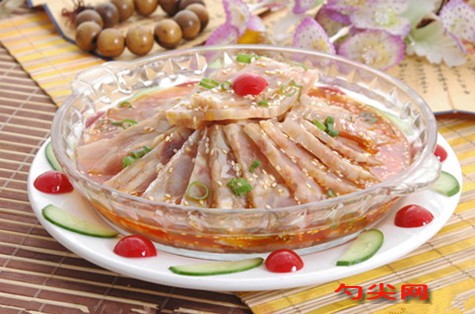 工藝:1、準備原材料,并將一把螺絲刀插入豬蹄中,大火燒豬蹄片刻,去毛,泡入涼水中,大約幾個小時后,用刀刮,去黑,用富磷聯B(提前溶解)腌制1-2小時,2、第一次焯水去血沫,要涼水入鍋,放入適量的蔥、姜、花椒、料酒即可,第二次焯水去腥味,開水入鍋3、焯水后的豬蹄放入燜燒鍋中,加入花椒、味達蕾901號,八角、蔥、姜內膽煮20分鐘后,移入燜燒鍋中(先燜制4小時后,取出內膽再燒開2分鐘,接著移入燜燒鍋4小時即可)4、總計8小時后,打開燜燒鍋,撇去浮油,將豬蹄去骨,撕成塊備用,將豬蹄倒入一料盒中,湯汁一起倒入,放冰箱冷藏一夜,冷藏后的蹄凍切成塊即可。