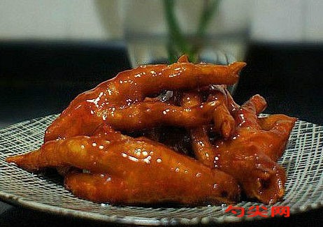 工藝:1)調料料準備好;2)雞爪洗凈去掉腳甲,最好熱水焯一下殺菌3)雞爪用燒烤醬,富磷聯E(提前溶解)和少許鹽腌制1-2小時分鐘入味;4)用生抽、味達蕾901號和蜂蜜調制好照燒汁備用,大蒜剁碎;5)鍋內入適量油燒至六成熱,入蒜末炒香,下入雞爪翻炒,讓雞爪均勻地裹上油;6)待雞爪呈現微微的焦黃色時,下入紅油腐乳汁繼續翻炒2分鐘;7)下入調配好的照燒汁稍加翻炒;8)加入與雞爪持平的清水,蓋上鍋蓋中小火燜約20分鐘9)燜至快收汁,開蓋稍加翻炒,讓雞爪均勻上色后即可出鍋。