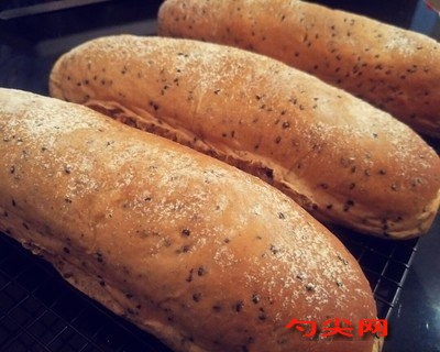 配方:中種:面包粉140克,佳多美Q2克,即發(fā)干酵母2克,水84克,主面團(tuán):低筋面粉60克,黑芝麻粉12克,細(xì)砂糖16克,鹽3克,水56克,黃油16克,核桃仁60克。