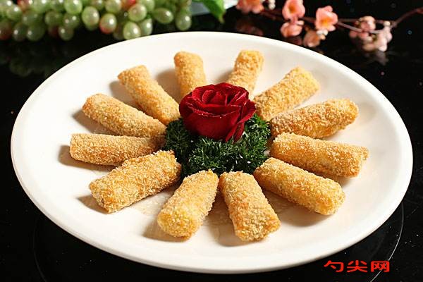 工藝:制作方法吐司面包片切成10cm×3.5cm的長方形,放入微波爐里烘20s,回軟,待用。芋頭去皮,切成小塊,蒸熟后制成泥,加入白糖、奶粉、黃油、香油拌勻即成餡心。吐司片抹上芋泥,卷成筒,兩頭蘸蛋液,粘上白芝麻,成吐司卷坯。色拉油加熱至120℃,下吐司卷坯,油溫控制:炸制時油溫要適中,不宜過高或過低。油溫過高會導致外焦里生,油溫過低則會導致吸油過多,影響口感。建議使用溫度計監測油溫,保持在160-180℃左右。炸成金黃色即成