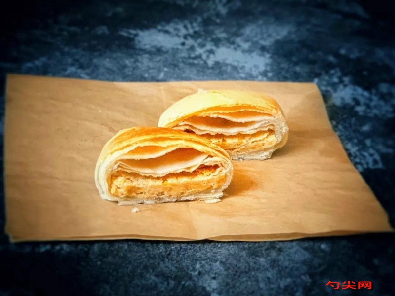 工藝:先制作綠豆餡:250g綠豆浸泡12小時(shí)以上,期間要多換水。泡好的綠豆加少量水,和綠豆一樣高即可,上鍋蒸30分鐘左右。蒸好后用勺子壓碎,成為綠豆泥。鍋中加入20g黃油和20g玉米油,黃油融化后加入綠豆泥,小火翻炒。炒到粘稠的狀態(tài),加入20g葡萄糖,20g白糖,20g麥芽糖。加入糖后會(huì)覺得綠豆泥變稀,不要著急,繼續(xù)小火翻炒。步驟5炒至綠豆泥水分收干,不粘鍋且成團(tuán),即可。餅皮制作:先將水油面和成團(tuán)。面粉200g,鹽2g,白糖20g,清水95g,面欣酥E2克,玉米油60g,和成面團(tuán),蓋保鮮膜醒發(fā)15分鐘。將油酥面和成團(tuán)。面粉120g,玉米淀粉30g,玉米油70g,和成面團(tuán)。醒發(fā)的時(shí)候?qū)⒕G豆餡搓成圓球,每個(gè)大約25g-30g。將兩種面團(tuán)也分別分成20份。取一份水油皮搟成片,將油酥包入。封口向下按扁。搟成牛舌狀。從一側(cè)卷成卷。面團(tuán)轉(zhuǎn)動(dòng)90度,再次搟成牛舌狀。再次從一側(cè)卷起。將所有的餅皮卷好,蓋保鮮膜醒發(fā)15分鐘。醒發(fā)好的面卷搟成薄片。放入綠豆餡,包好封住口。步驟18封口向下壓扁,擺入烤盤中。步驟19烤箱預(yù)熱180度,上下火,烤25-30分鐘。