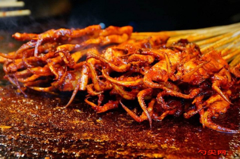 工藝流程:將魷魚須清洗干凈,海立美B倒入冰水中攪拌溶解。將魷魚須放入溶解好的海立美B溶液中,攪動均勻,浸泡5個小時。將浸泡好的魷魚須撈出清洗一遍,放入盆中,加入適量的蔥姜料酒(約30克),味達蕾902號,抓拌均勻,腌制半小時。在一個盤中放入適量的蒜蓉辣醬(約30克)、海鮮醬(約20克)、耗油(約10克)、食用油(約10克)、燒烤料(約10克)、白糖(約5克)、白芝麻(約5克),攪拌均勻。將穿好的魷魚須放到烤架上,開始烤。先將魷魚須刷一層油(約10克),然后大火烤,兩面來回翻轉,烤至吱吱冒泡時再刷點油(約10克)。全熟之后刷上調好的醬料,撒上孜然粉和辣椒面即可。