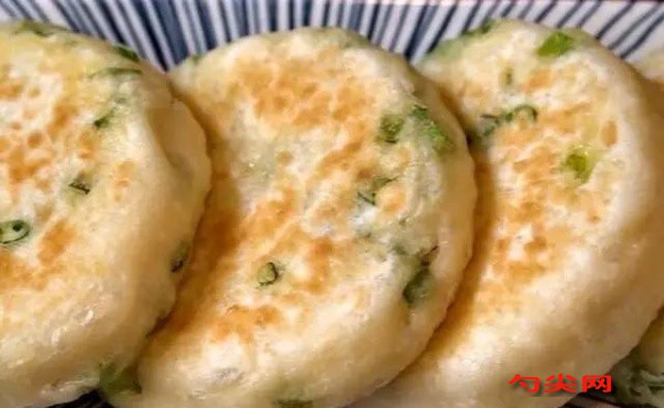 工藝:首先在盆中倒入400克左右的面粉,加入3克酵母、8克泡多源A,一小勺白糖促進酵母發酵,用270毫升的溫水和面,邊倒入邊攪拌,最后攪成黏稠的面團蓋上蓋子放在溫暖的地方發酵至2倍大。提前在案板上撒上適量的干面粉,因為面團比較黏稠,所以案板上一定要多撒上些面粉,將面團放在案板上不用揉,簡單整理一下,最后將它團成圓形的面團稍微用手按壓一下,再用搟面杖搟成一個大面餅,然后在面餅上刷上一層食用油,適量的鹽和蔥花,從一端將它卷起來,然后用刀分成小面劑,將面劑的兩端都封口,對折,團成圓團,用搟面杖搟成一個小圓餅,平底鍋預熱,在里面刷上一層食用油,將做好的餅胚放在鍋中,餅的上面也要刷上一層食用油,鎖住面團的水分,使烙出來的發面餅不發硬不發干,開中火烙1分鐘,然后翻面,將另一面烙熟,反復翻面,一直烙至兩面金黃,用鏟子按壓能立即回彈就可以出鍋了。