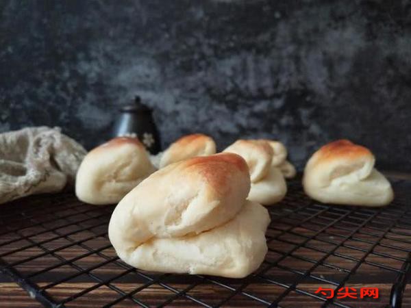 工藝流程:將酥料中的中筋面粉放入盆中,加熱花生油和豬油混合后倒入面粉中,攪拌成柔軟的油酥團。將皮料中的所有材料混合,揉成光滑、柔軟的面團。右手抓住面團尾部,左手用掌根反復來回推揉面團另一頭,直至面團光滑有筋性。可以分幾個小塊逐個推揉。在案板上涂抹豬油,將面團反復摔打,如果感覺面團不夠軟,可以在面團上涂抹一層水,再反復摔打至光滑出筋膜。將面團放在溫暖處發酵至兩倍大。將發酵好的皮料和酥料分別分割成等份。取一份皮料,包入一份酥料,捏緊口。將包好的面團輕輕搓扁,搟成薄長條,然后卷成卷,全部卷好后蓋保鮮膜醒15分鐘。取一個卷好的面團,搟成厚長條,兩頭往中間疊,再疊過來像疊被子一樣。用面棍在表面壓一壓,然后放入烤盤。在溫暖處醒發至面團略鼓起,約28度下醒發30分鐘,注意不要發得過大。將烤盤放入預熱至160度的烤箱中,上下火烤20分鐘。