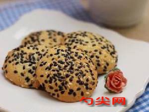 配方:面粉500克,豬油150克,白糖100克,雞蛋黃10個,芝麻100克,面欣酥A5克,鹽2克.