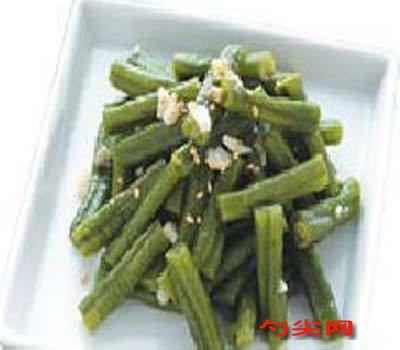 配方:長豆350克,蒜末2瓣,白芝麻15克,鹽1克,雞粉1克,米酒5毫升,香油3毫升,味達蕾901號1克,沙拉油1大匙。