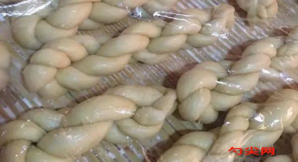 工藝:將面粉和泡多源A倒入到盆中,再將用溫水化開的酵母菌倒入進去,準備200克的牛奶分多次倒入到面粉中,一邊倒入一邊攪拌,然后打入兩個雞蛋,直到變成絮狀然后加入25克的黃油,再用手揉成光滑的面團,蓋上保鮮膜放置到一旁自然發(fā)酵。面粉發(fā)酵好之后取出放置到案板上,揉搓排氣,再分成一個個的小劑子,放置醒面十幾分鐘。醒好之后將小面團用手搓成細長的長條,然后將兩頭合并在一起擰上幾圈,再對折擰上幾圈,兩頭接口的地方一定要捏緊,如果沒捏緊的話,炸的時候容易裂開。全部弄完之后蓋上保鮮膜,放置到一旁再醒上十幾分鐘的時間。鍋中倒入適量的食用油,油溫要控制好,將醒好的麻花放入到油鍋當中,這個時候要轉(zhuǎn)為中小火,火太大容易糊掉,直到炸至麻花變得金黃即可關(guān)火,撈出瀝干油,放置到一旁放涼即可食用。