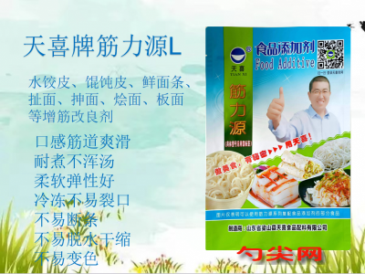 ★商品名:天喜牌筋力源L型 產品名稱:筋力源牌復配增稠水分保持劑 型號:JLY-L 本品按照《食品安全國家標準 食品添加劑使用標準GB2760》及補充規定的品種、應用分類、使用范圍、最大使用量、殘留量等科學組方,并且按照《食品安全國家標準 復配食品添加劑通則GB26687》精心配制而成。本品已經通過食品生產許可,保障食品安全。用戶按照本說明的用法用量生產制作的生濕面制品(食品分類號:06.03.02.01)、方便米面制品(食品分類號:06.07)、冷凍米面制品(06.08)既不會超標也不會超量。