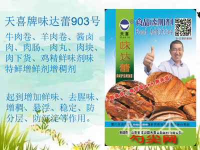 ★商品名:天喜牌味達(dá)蕾903號(hào)型 產(chǎn)品名稱(chēng):味達(dá)蕾牌復(fù)配穩(wěn)定增味增稠劑1 型號(hào):WDL-903 本品按照《食品安全國(guó)家標(biāo)準(zhǔn) 食品添加劑使用標(biāo)準(zhǔn)GB2760》及補(bǔ)充規(guī)定的品種、應(yīng)用分類(lèi)、使用范圍、最大使用量、殘留量等科學(xué)組方,并且按照《食品安全國(guó)家標(biāo)準(zhǔn) 復(fù)配食品添加劑通則GB26687》精心配制而成。本品已經(jīng)通過(guò)食品生產(chǎn)許可,保障食品安全。用戶(hù)按照本說(shuō)明的用法用量生產(chǎn)制作的各類(lèi)食品(配料表中成分在GB2760表A.1中有限量要求的食品除外;配料表中成分在GB2760表A.3中所例外的食品除外)既不會(huì)超標(biāo)也不會(huì)超量。