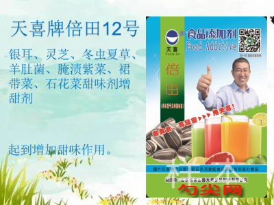 ★商品名:天喜牌倍田12型 產(chǎn)品名稱:倍田牌復配甜味劑12 型號:BT-12 本品按照《食品安全國家標準 食品添加劑使用標準GB2760》及補充規(guī)定的品種、應用分類、使用范圍、最大使用量、殘留量等科學組方,并且按照《食品安全國家標準 復配食品添加劑通則GB26687》精心配制而成。本品已經(jīng)通過食品生產(chǎn)許可,保障食品安全。用戶按照本說明的用法用量生產(chǎn)制作的糖果(食品分類號:05.02 )既不會超標也不會超量。