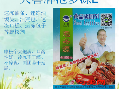 ★功能作用:采用本品制作的速凍油條、速凍油饃頭等速凍油炸面制品膨松個大飽滿、口溶性好,冷凍不干縮、不碎裂。面團易于延展。本品相對于泡多源T型具有更好的延展性。