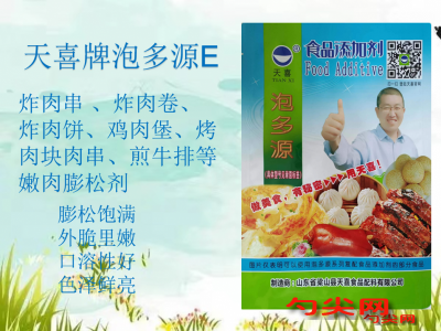 ★商品名:天喜牌泡多源E型 產(chǎn)品名稱:泡多源牌復(fù)配酶制膨松劑1 型號(hào):PDY-E 本品按照《食品安全國家標(biāo)準(zhǔn) 食品添加劑使用標(biāo)準(zhǔn)GB2760》及補(bǔ)充規(guī)定的品種、應(yīng)用分類、使用范圍、最大使用量、殘留量等科學(xué)組方,并且按照《食品安全國家標(biāo)準(zhǔn) 復(fù)配食品添加劑通則GB266871》精心配制而成。本品已經(jīng)通過食品生產(chǎn)許可,保障食品安全。用戶按照本說明的用法用量生產(chǎn)制作的熟制肉制品(食品分類號(hào):08.03)、預(yù)制肉制品(食品分類號(hào):08.02)、冷凍魚糜制品(食品分類號(hào):09.02.03)既不會(huì)超標(biāo)也不會(huì)超量。