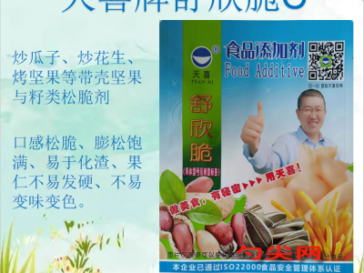 ★功能作用:采用〔舒欣脆C型〕加工制作的炒瓜子、炒花生、烤花生、烤堅果等帶殼堅果與籽類口感松脆、膨松飽滿、易于化渣、果仁不易發硬、不易變味變色?!彩嫘来郈型〕還可用于糖炒栗子等。