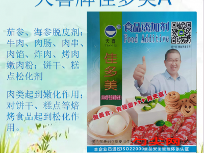 ★功能作用:〔佳多美A型〕對茄參等水產品角質皮層有水解作用;對醬、鹵、燉、煮牛肉、豬肉、羊肉、雞肉、鴨肉、鵝肉以及肉腸、肉餡、炸肉、烤肉串等肉類起到嫩化作用;對餅干、糕點等焙烤食品起到松化作用。〔佳多美A型〕還可用于姜母鴨、鹽焗雞翅、橋頭排骨、鹽焗雞、鹽水鴨等。