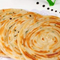 ①.手抓餅制作方法:高筋面粉1000克、鹽10-15克、白糖5克、泡多源B型10-20克、乙基麥芽酚0.3克、五香粉10克(可不加)、蔥花50克、豬油或起酥油150~250克、開水300克、涼水180克。工藝:500克面粉與泡多源干拌均勻。鹽、白糖、乙基麥芽酚加入開水溶解,再加入另外500克面粉。然后將兩種面粉攪拌到一起,加入涼水揉成面團,發酵20-50分鐘,降溫后揪成長條,搟成長面皮,面皮刷豬油后撒上五香粉、蔥花,再多層疊到一起,擰幾圈,靜止10分鐘后軋成圓餅,烙熟后中間切一刀,甩松散即可。