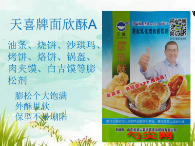 ★功能作用:采用〔面欣酥A型 〕加工制作的油條、烙餅、燒餅、油炸餅、鍋盔等油炸面制品、焙烤食品膨松個(gè)大飽滿、外酥里軟,保型不易塌陷?!裁嫘浪諥型〕代替香甜泡打粉使用,不宜鋁超標(biāo)! 〔面欣酥A型〕還可用于壯饃、雙橋燒餅、香蔥烤牌、五香燒餅、香酥燒餅、潼關(guān)饃、菜餅、鍋貼、酥皮餡餅、酥脆大油條、掉渣燒餅、夾餡燒餅、Z博炒鍋餅、酥脆菜盒、酥脆肉盒、奧爾良雞肉餅、油包子、油旋餅、油酥燒餅、梅干菜肉餅、燙面醬香餅、新疆芝麻馕、烤馕包肉、紫米餅、老北京糖火燒、軍屯鍋盔、蔥油餅、蔥油烤排、炒鍋餅、吊爐燒餅、黃橋燒餅、砍饃、油炸餅、空心燒餅、豬肉餡餅、缸爐燒餅、肉火燒、芝麻馕、糖酥餅、酥脆牛肉餡餅、豆腐渣酥脆芝麻大燒餅、香酥千層烤餅、牛肉餡燒餅、糖餡酥皮火燒、牛肉鍋盔、酥脆肉鍋盔、老婆餅、油酥燒餅、盤絲黃金餅、韭菜餡鍋盔、韭菜盒子、麻將燒餅、梅干菜鍋盔、香酥千層大餅、鞋底餅、牛舌餅、香酥驢肉火燒、香酥千層餅、潼關(guān)饃、牛肉酥餅、水滸發(fā)源地炊餅、肉盒、肉壯饃、發(fā)面酥餅、水晶鍋貼、菏澤燒餅等。
