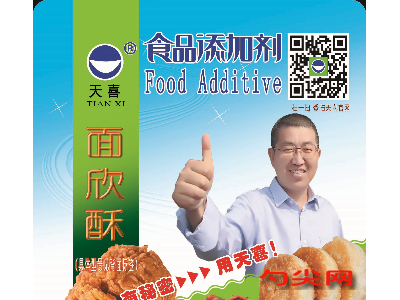 ★商品名:天喜牌面欣酥B型 產品名稱:面欣酥牌復配穩定膨松劑5 型號:MXS-B 本品完全按照《食品安全國家標準 食品添加劑使用標準GB2760》及補充規定的品種、應用分類、使用范圍、最大使用量、殘留量等科學組方,并且按照《食品安全國家標準 復配食品添加劑通則GB26687》精心配制而成。本品已經通過食品生產許可,保障食品安全。用戶按照本說明的用法用量生產制作的油炸面制品(食品分類號:06.03.02.05)、焙烤食品(食品分類號:07.0)既不會超標也不會超量。
