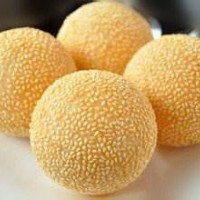 ⑥非速凍夾心麻圓:優(yōu)質(zhì)水磨糯米粉10斤、泡多源K型100克、豬油0.2-0.3斤(可不加)、白砂糖1-4斤、餡料適量、水6.5-7斤。工藝:將泡多源加入糯米粉干拌均勻。再加入白糖、水、豬油,和成面團(tuán),蓋上低溫10-15℃醒發(fā)12-15小時(shí)(常溫醒發(fā)3-6小時(shí))。然后,揪成40-50克小團(tuán),搓圓,壓平,包餡,成型,再沾上芝麻,然后油炸。低溫入鍋溫度150℃,慢慢加溫升至180℃,不停翻動(dòng),炸至酥脆,大約炸16分鐘左右。