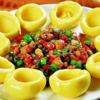 ⑤虎皮鳳爪做法:原料:鳳爪500克、0K醬20克、豉油皇30克、草菇老抽1克、蔥姜20克、糖2克、味精1克、泡多源K型10克、檸檬酸少許、胡椒粉0.1克、黃酒2克、茴香1只、湯500克、清油15克(實(shí)耗)。做法:1.剪去雞爪尖,拆去爪上大骨,洗凈。冷水鍋中燒開,放入鳳爪煮5分鐘取出,再放入泡多源K型溶液浸泡2-5小時(shí)。洗凈、瀝干或用風(fēng)扇吹干。2.油燒熱,放入雞爪,炸至金黃,皮起皺時(shí)撈出,放冷水中泡2小時(shí)至皮漲發(fā)。3,鍋中放湯、oK醬、豉油皇、草菇老抽、糖、茴香、胡椒粉、黃酒、蔥姜和雞爪,燒開后盛入碗中上籠蒸酥,取出放鍋中加入味精,滴上幾滴檸檬酸,收緊汁水后裝入煲中燒熱即成。