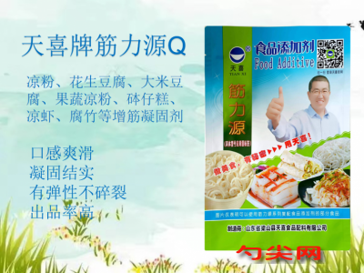 ★商品名:天喜牌筋力源Q型 產品名稱:筋力源牌復配增稠劑5 型號:JLY-Q 本品按照《食品安全國家標準 食品添加劑使用標準GB2760-》及補充規定的品種、應用分類、使用范圍、最大使用量、殘留量等科學組方,并且按照《食品安全國家標準 復配食品添加劑通則GB26687》精心配制而成。本品已經通過食品生產許可,保障食品安全。用戶按照本說明的用法用量生產制作的各類食品(配料表中成分在GB2760表A.1中有限量要求的食品除外;配料表中成分在GB2760表A.3中所例外的食品除外)既不會超標也不會超量。
