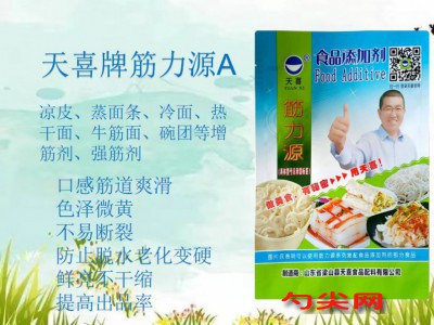 ★商品名:天喜牌筋力源A型 產品名稱:筋力源牌復配方便米面制品酸度調節增稠劑 型號:JLY-A 本品按照《食品安全國家標準 食品添加劑使用標準GB2760》及補充規定的品種、應用分類、使用范圍、最大使用量、殘留量等科學組方,并且按照《食品安全國家標準 復配食品添加劑通則GB26687》精心配制而成。本品已經通過食品生產許可,保障食品安全。用戶按照本說明的用法用量生產制作的方便米面制品(食品分類號:06.07)、冷凍米面制品(食品分類號:06.08)既不會超標也不會超量。