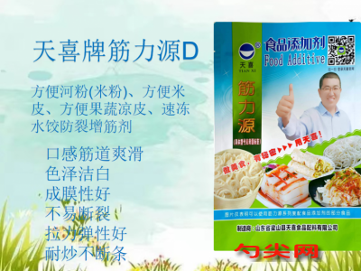 ★商品名:天喜牌筋力源D型 產品名稱:筋力源牌復配水分保持增稠劑3 型號:JLY-D 本品按照《食品安全國家標準 食品添加劑使用標準GB2760-2014》及補充規定的品種、應用分類、使用范圍、最大使用量、殘留量等科學組方,并且按照《食品安全國家標準 復配食品添加劑通則GB26687-2011》精心配制而成。本品已經通過食品生產許可,保障食品安全。用戶按照本說明的用法用量生產制作的方便米面制品(食品分類號:06.07)、冷凍米面制品(食品分類號:06.08)既不會超標也不會超量。
