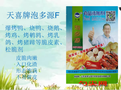 ★功能作用:采用本品加工制作的烤禽(包括:爆烤鴨、烤雞、烤鴿子、烤鵪鶉、烤鵝等)、烤乳豬、烤豬蹄等預(yù)制肉制品、熟制肉制品皮脆肉嫩、入口化渣、形態(tài)飽滿、不易破皮。