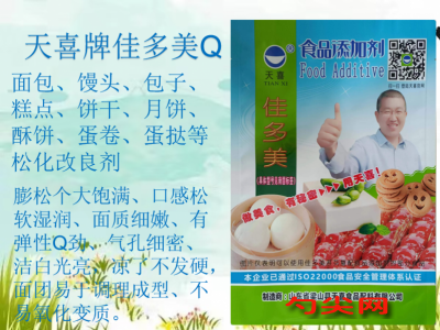 ★商品名:天喜牌佳多美Q型 產(chǎn)品名稱:佳多美牌復(fù)配膨松乳化酶制劑5 型號(hào):JDM-Q 本品按照《食品安全國家標(biāo)準(zhǔn) 食品添加劑使用標(biāo)準(zhǔn)GB2760》及補(bǔ)充規(guī)定的品種、應(yīng)用分類、使用范圍、最大使用量、殘留量等科學(xué)組方,并且按照《食品安全國家標(biāo)準(zhǔn) 復(fù)配食品添加劑通則GB26687》精心配制而成。本品已經(jīng)通過食品生產(chǎn)許可,保障食品安全。用戶按照本說明的用法用量生產(chǎn)制作的發(fā)酵面制品(食品分類號(hào):06.03.02.03)、面包(食品分類號(hào):07.01)、糕點(diǎn)(食品分類號(hào):07.02)、餅干(食品分類號(hào):07.03)既不會(huì)超標(biāo)也不會(huì)超量。