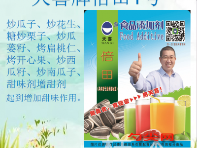 ★商品名:天喜牌倍田1型 產品名稱:倍田牌復配甜味劑1 型號:BT-1 本品按照《食品安全國家標準 食品添加劑使用標準GB2760》及補充規定的品種、應用分類、使用范圍、最大使用量、殘留量等科學組方,并 且按照《食品安全國家標準 復配食品添加劑通則GB26687》精心配制而成。本品已經通過食品生產許可,保障食品安全。用戶按照本說明的用法用量生產制作的帶殼熟制堅果與籽類(食品分類號:04.05.02.01.01)既不會超標也不會超量。