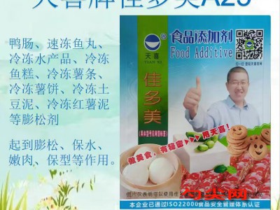 ★功能作用:〔佳多美A25型 〕可用于速凍魚丸、冷凍水產品、冷凍魚糕、冷凍薯條、冷凍薯餅、冷凍土豆泥、冷凍紅薯泥等膨松劑、冷凍鱈魚排、速凍帶魚段、冷凍薯條、冷凍薯餅、鴨腸、大米小小酥(膨化食品)等食品,起到膨松、保水、嫩肉、保型等作用。〔佳多美A25型 〕還可用于冷凍紅薯泥丸、冷凍薯餅、冷凍薯條、速凍大麻球等。