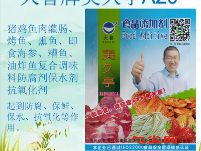★功能作用:〔美久亭A20型〕用于豬肉灌腸、雞肉灌腸、魚肉灌腸、烤魚、熏魚、即食海參、糟魚、油炸魚、蝦醬、熟海蜇、炸魚皮、烤魚片、烤蝦等肉灌腸類、熟制水產(chǎn)品、復(fù)合調(diào)味料,起到防腐、保鮮、保水、抗氧化等作用。對(duì)于烤、炸魚類蝦類,還有肉質(zhì)細(xì)嫩、口感酥脆的作用。